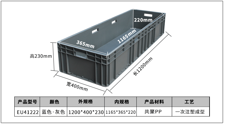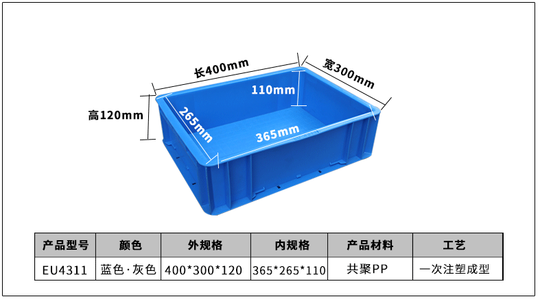 EU系列標準可堆式物流周轉箱是TOYOTA(豐田)汽車公司在全球使用的歐洲標準物流箱。該系列產品選用100%全新高抗沖擊性改性PP為原料、并運用先進的工藝和模具設備進行開發生產。由于本系列產品合理的設計、優質的品質、周轉便捷、堆垛整齊、便于管理,同時又具有耐油、耐酸、耐堿、適應環境溫度廣(-25℃—+60℃)等優質特性,使其適用于企業物流中的運輸、倉儲、流通、加工制造等閉環回路配送系統,主要適用于豐田汽車主機廠及其配套單位。